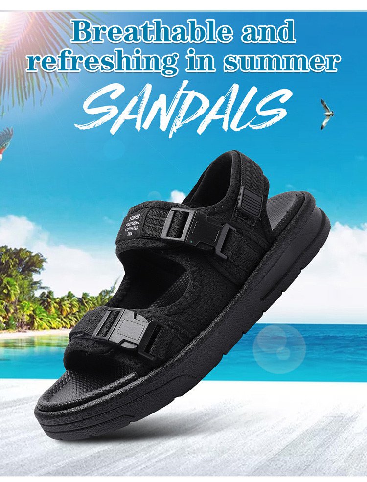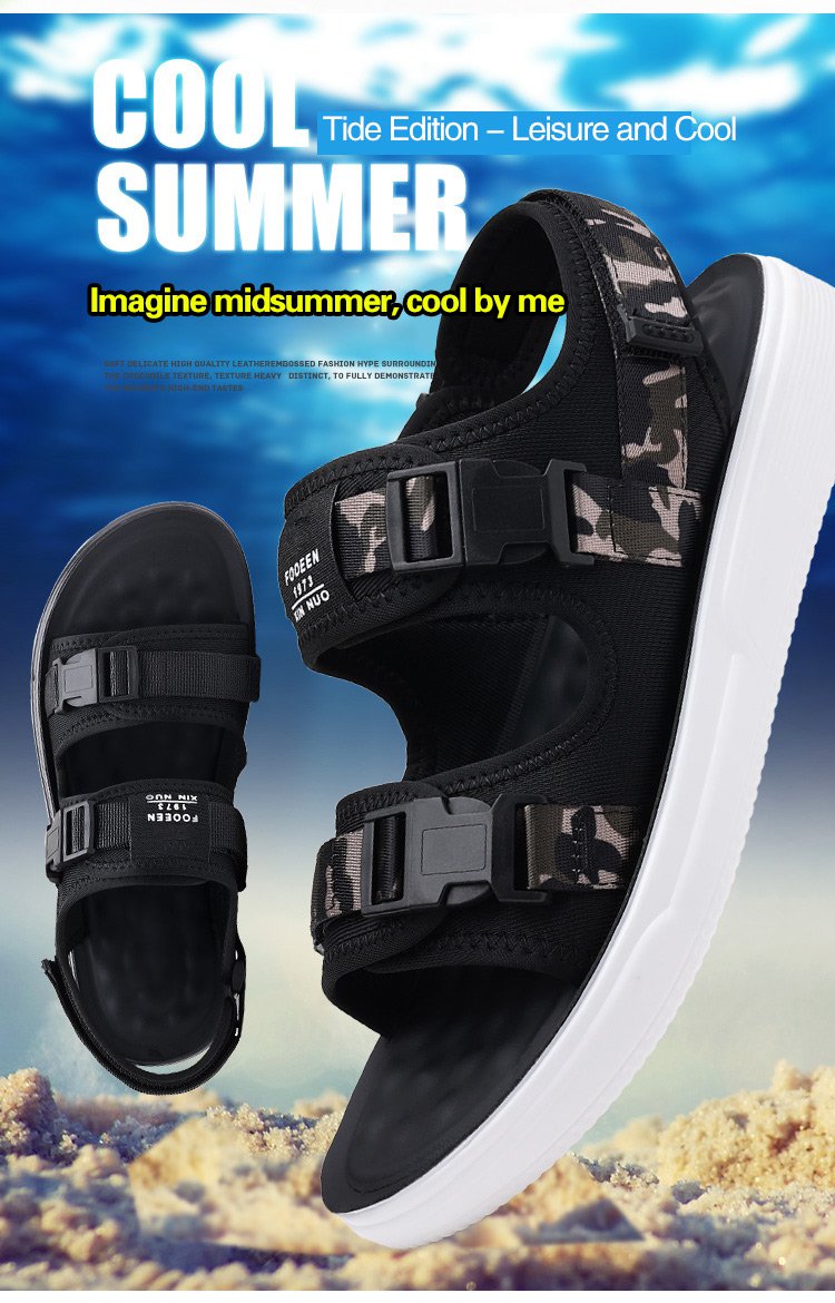 Summer men's outdoor sandals are made of lightweight and environmentally friendly EVA material, which is comfortable and light on the feet. The sole is made of rubber, which has good wear resistance and anti-slip effect. The magic buckle design makes the shoes easier to put on and take off.
